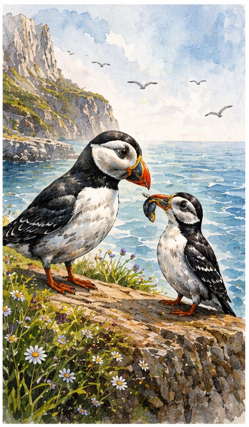 En la escuela de aves conoció a un frailecillo que nadie se explicaba ¡de dónde había salido! Los rumores decían que a su madre un huracán la había alejado desde las costas del Atlántico norte, algo que hacía comprender su escasa adaptación por más que se esforzaba.